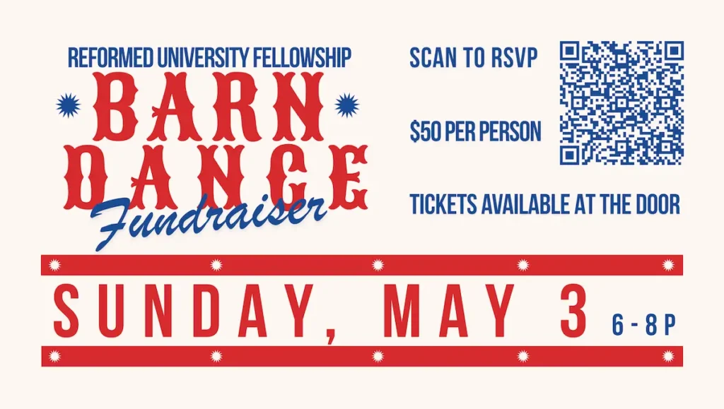 RUF is throwing a barn dance fundraiser! Sunday, May 3, from 6–8p, RUF KU is throwing a barn dance and dinner to raise money for our Summer Conference. Join us for BBQ, dessert, and dancing! Get on your dancing shoes and take your best gal to a hoedown—with our student-led line and swing dancing, anyone can cut a rug. Scan the QR code to RSVP; tickets are sold at the door.